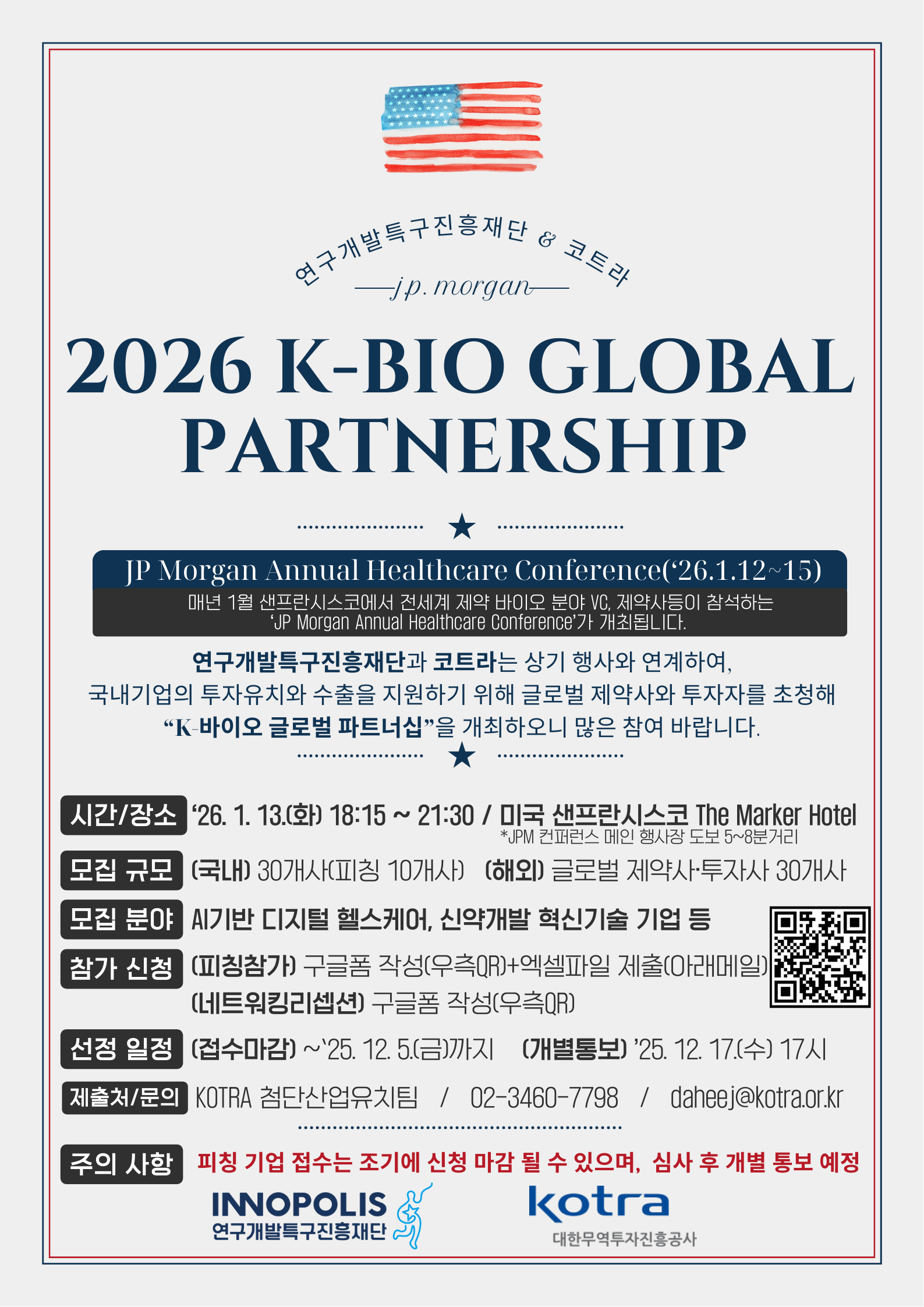 「2026 K-바이오 글로벌 파트너십(JP모건 연계)」을 진행하고자 합니다.