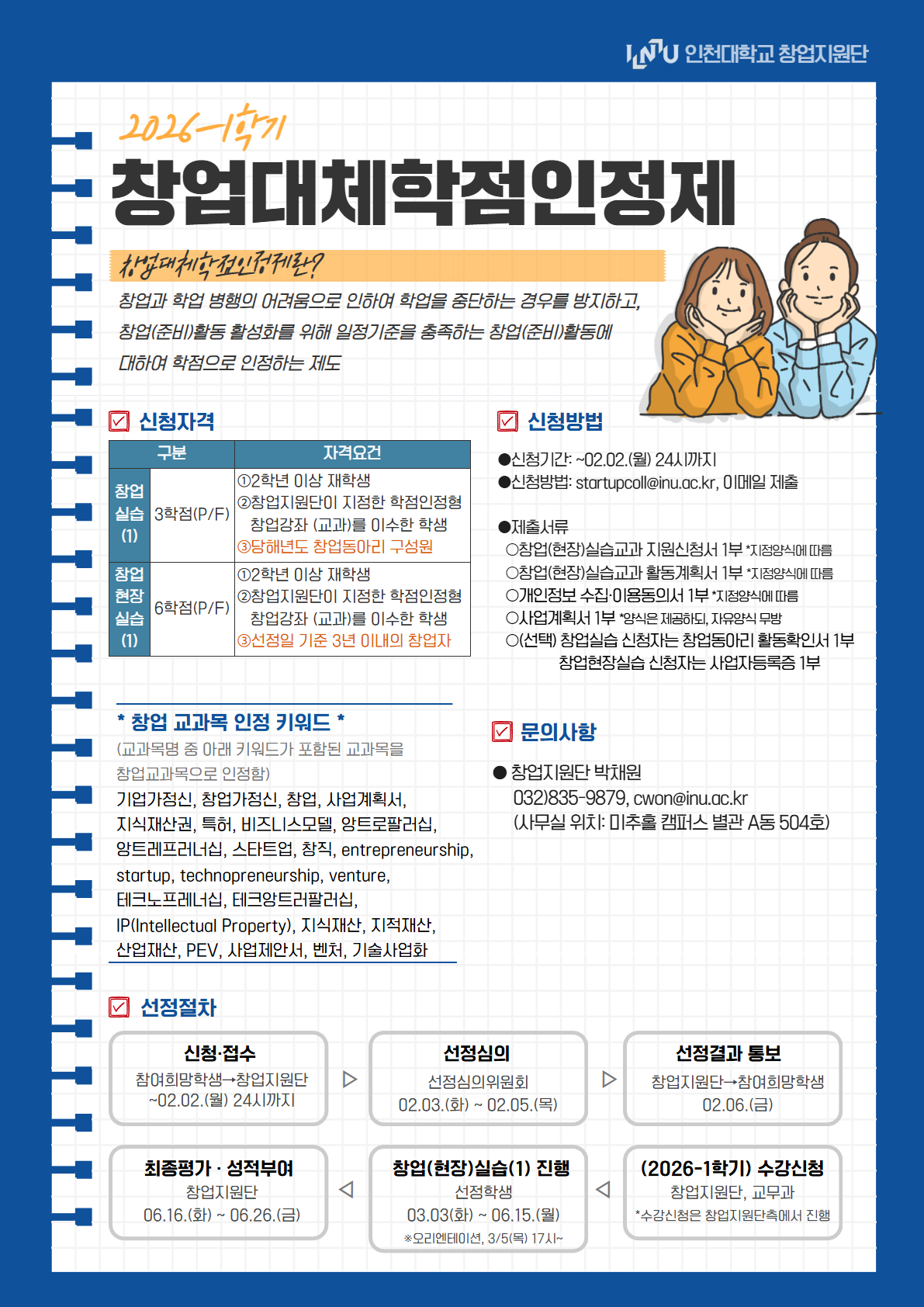 - 창업지원단 (032-835-9879)