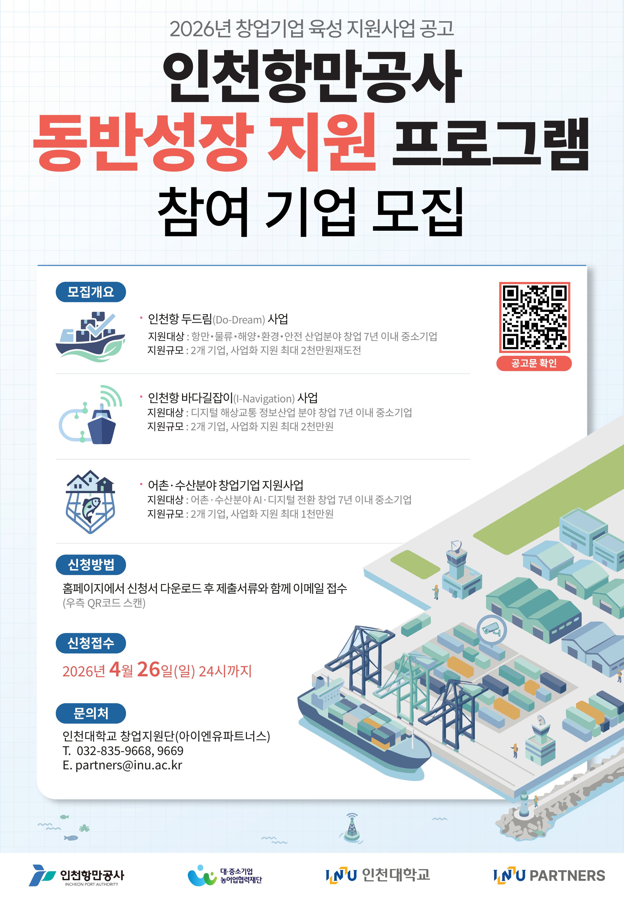 2026년 인천항만공사 창업기업 육성사업 공고(~4월 26일까지)
